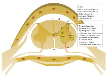 ![]() Spinal cord (Ventrolateral sulcus is "s5") | |