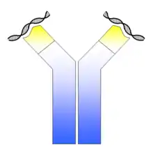 Anti-Ro and anti-La antibodies, also known as SS-A and SS-B, respectively, are commonly found in primary Sjögren's syndrome, an autoimmune disorder that affects the exocrine glands. The presence of both antibodies is found in 30–60% of Sjögren's syndrome, anti-Ro antibodies alone are found in 50–70% of Sjögren's syndrome and 30% of SLE with cutaneous involvement, and anti-La antibodies are rarely found in isolation.[10][16] Anti-La antibodies are also found in SLE; however, Sjögren's syndrome is normally also present.[17] Anti-Ro antibodies are also found less frequently in other disorders including autoimmune liver diseases, coeliac disease, autoimmune rheumatic diseases, cardiac neonatal lupus erythematosus and polymyositis.[18][19] During pregnancy, anti-Ro antibodies can cross the placenta and cause heart block[20][21] and neonatal lupus in babies.[22] In Sjögren's syndrome, anti-Ro and anti-La antibodies correlate with early onset, increased disease duration, parotid gland enlargement, disease outside the glands and infiltration of glands by lymphocytes.[11] Anti-Ro antibodies are specific to components of the Ro-RNP complex, comprising 45kDa, 52kDa, 54kDa and 60kDa proteins and RNA. The 60kDa DNA/RNA binding protein and 52kDa T-cell regulatory protein are the best characterised antigens of anti-Ro antibodies. Collectively, these proteins are part of a ribonucleoprotein (RNP) complex that associate with the hyRNAs, hY1-hY5. The La antigen is a 48kDa transcription termination factor of RNA polymerase III, which associates with the Ro-RNP complex.[15][16][23][24]