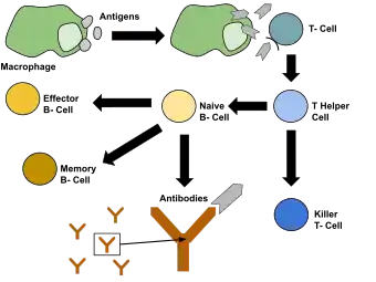 Upon receiving intrinsic death signals, the gene NOXA encodes for the protein Noxa through a three-exon transcript.[22] This protein binds to anti-apoptotic proteins resulting in these proteins' inhibition.[21] As a p53 inducible gene, NOXA is transcribed and translated to Noxa in response to DNA damage and hypoxia induced apoptosis.[21] A constitutive gene found in the brain, thymus, spleen, and several other organs, it initiates apoptosis through Bax-mediated mitochondrial-dysfunction through the inhibition of the Bcl2 family's antiapoptotic members.[22] Through gene knockout studies, it was shown that double deficient Noxa there was no spontaneous tumor development as commonly observed with knockout of p53.[22] Noxa has been shown to be involved in the maintenance of memory CD4+ T Th1/Th2 cell homeostasis where in the absence of Noxa, Th2 memory T-cell death results.[22]