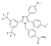 Apoptozole is a drug that acts as a potent and selective inhibitor of the heat shock protein Hsp70, and was one of the first compounds developed to act at this target. It induces apoptosis in susceptible cells, and displays anti-cancer, anti-malarial and antiviral activity. The promising results in animal studies makes it likely that either apoptozole or compounds with similar modes of action will be further researched as potential therapeutics in the future.[1][2][3][4][5]