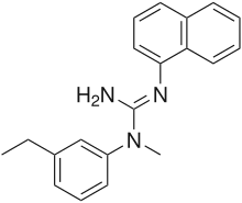 - Reddy NL, Hu LY, Cotter RE, Fischer JB, Wong WJ, McBurney RN, et al. (January 1994). "Synthesis and structure-activity studies of N,N'-diarylguanidine derivatives. N-(1-naphthyl)-N'-(3-ethylphenyl)-N'-methylguanidine: a new, selective noncompetitive NMDA receptor antagonist". Journal of Medicinal Chemistry. 37 (2): 260–7. doi:10.1021/jm00028a009. PMID 8295213.