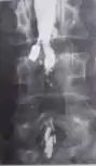 | Myelogram showing arachnoiditis in the lumbar spine | |