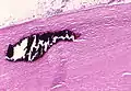| A plaque caused by asbestos exposure on the diaphragmatic pleura. | |