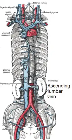 - the hemiazygos vein (in the case of the left ascending lumbar vein).[1]