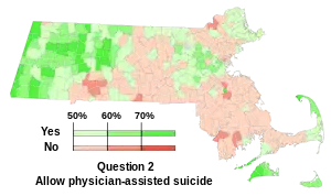 Voting results for the 2012 Massachusetts Death with Dignity Initiative