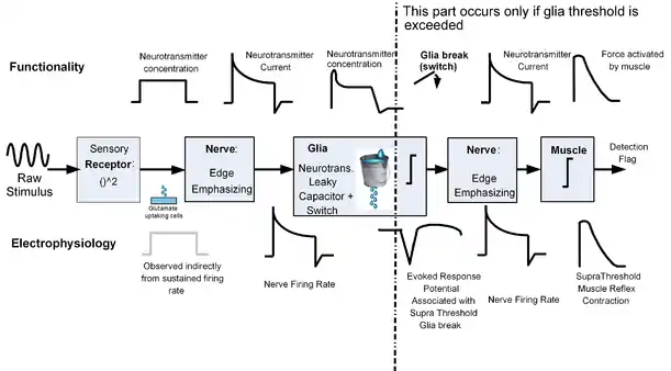 Fig. 6 The conjectured switching role of glia in the biological neural detection scheme as suggested by Nossenson et al.[32][33]