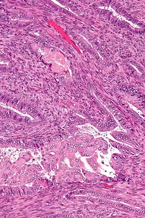 | Micrograph of an atypical polypoid adenomyoma. H&E stain. | |