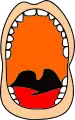 The tongue moves back in the mouth while pronouncing the letter 'k' (or similar sounds). If the soft palate (orange in this image) is cleft, air escapes and a nasal sound is produced instead. The surgery fixes this.