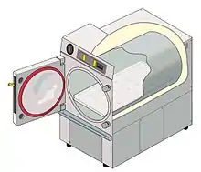 Cutaway illustration of a cylindrical-chamber autoclave