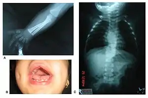 Two forms of the disorder exist, dominant and recessive, of which the former is more common. Patients with the dominant version often suffer moderately from the aforementioned symptoms. Recessive cases, on the other hand, are usually more physically marked, and individuals may exhibit more skeletal abnormalities.[2] The recessive form is particularly frequent in Turkey.[3] However, this can likely be explained by a common ancestor, as these patients' families can be traced to a single town in Eastern Turkey.[4] Clusters of the autosomal recessive form have also been documented in Oman and Czechoslovakia.[1]
