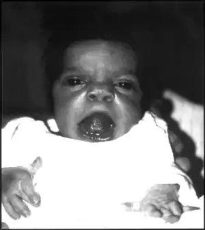 | An infant exhibiting the facial features of Robinow syndrome. | |