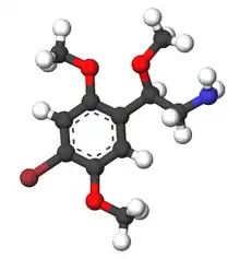 BOB (4-bromo-2,5,beta-trimethoxyphenethylamine) is a lesser-known psychedelic drug. It is the beta-methoxy analog of 2C-B. BOB was first synthesized by Alexander Shulgin. In his book PiHKAL, the dosage range is listed as 10–20 mg, and the duration listed as 10–20 hours.[1] BOB produces an altered state of consciousness, tinnitus, a pleasant tingling throughout the body, and a sense of awareness.[1] Very little data exists about the pharmacological properties, metabolism, and toxicity of BOB.