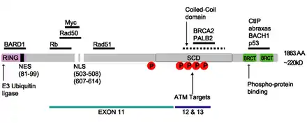 - Cortez D, Wang Y, Qin J, Elledge SJ (November 1999). "Requirement of ATM-dependent phosphorylation of brca1 in the DNA damage response to double-strand breaks". Science. 286 (5442): 1162–6. doi:10.1126/science.286.5442.1162. PMID 10550055.