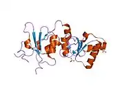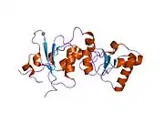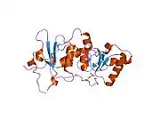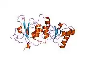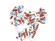 Breast cancer type 1 susceptibility protein is a protein that in humans is encoded by the BRCA1 (/ˌbrækəˈwʌn/) gene.[5] Orthologs are common in other vertebrate species, whereas invertebrate genomes may encode a more distantly related gene.[6] BRCA1 is a human tumor suppressor gene[7][8] (also known as a caretaker gene) and is responsible for repairing DNA.[9]