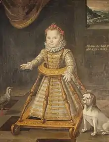 Baby walkers were known as early as the 15th century in Europe. An illumination in the Hours of Catherine of Cleves, a Dutch manuscript from that time, depicts the infant Jesus in a wooden baby walker.[17]