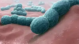 Bacterial pneumonia is a type of pneumonia caused by bacterial infection.[1]