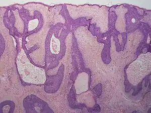 A basaloid follicular hamartoma is a cutaneous condition characterized as distinctive benign adnexal tumor that has several described variants.[1]:675