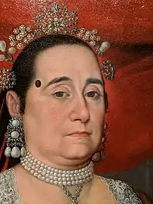 Artificial beauty marks, or mouches (Fr. flies), became fashionable in sixteenth-century France, and the fashion persisted into the eighteenth century. When the fashion spread to Spain and the Spanish Empire they were called a chiqueador.[2]