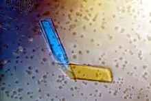 The proteins are immunoglobulin light chains (paraproteins) and are produced by neoplastic plasma cells. They can be kappa (most of the time) or lambda.[2] The light chains can be immunoglobulin fragments or single homogeneous immunoglobulins. They are found in urine as a result of decreased kidney filtration capabilities due to kidney failure, sometimes induced by hypercalcemia from the calcium released as the bones are destroyed or from the light chains themselves. The light chains have historically been detected by heating a urine specimen (which causes the protein to precipitate) and now by electrophoresis of concentrated urine.[3] More recently, serum free light chain assays have been utilised in a number of published studies which have indicated superiority over the urine tests, particularly for patients producing low levels of monoclonal free light chains, as seen in nonsecretory multiple myeloma[4][5][6] and AL amyloidosis.[6][7][8][9]
