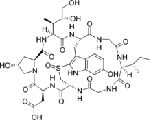 1. G. Shoham; D.C. Rees; W.N. Lipscomb; G. Zanotti; Th. Wieland (1984). "Crystal and Molecular Structure of S-Deoxo[Ile3]amaninamide: A synthetic Analogue of Amanita Toxins". Journal of the American Chemical Society. 106 (16): 4606–4615. doi:10.1021/ja00328a051.