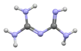 Biguanide (/baɪˈɡwɒnaɪd/) is the organic compound with the formula HN(C(NH)NH2)2. It is a colorless solid that dissolves in water to give highly basic solution. These solutions slowly hydrolyse to ammonia and urea.[1]