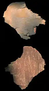 In India, the birch (Sanskrit: भुर्ज, bhurja) holds great historical significance in the culture of North India, where the thin bark coming off in winter was extensively used as writing paper. Birch paper (Sanskrit: भुर्ज पत्र, bhurja patra) is exceptionally durable and was the material used for many ancient Indian texts.[16][17] The Roman period Vindolanda tablets also use birch as a material on which to write and birch bark was used widely in ancient Russia as notepaper (beresta) and for decorative purposes and even making footwear (lapti) and baskets.