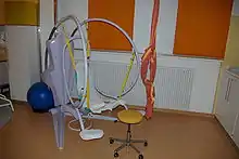 As of the 1980s the birthing chair has been making a comeback in the modern medicine of childbirth. Some expecting mothers have reverted to the birthing chair for its upright position because it allows gravity to assist in the expulsion of the baby, and a position ''upright but more or less immobile'.[5] Studies have shown that the birthing chair speeds up the time of delivery and increases comfort for expecting mothers.[6] The position of the birthing chair allows muscles (including vaginal and abdominal as well as those in the back, stomach, legs, and arms) used in childbirth to work to efficiency. Since the 1980s many hospitals have begun installing birthing chairs due to the large number of enquiries about them.[7]