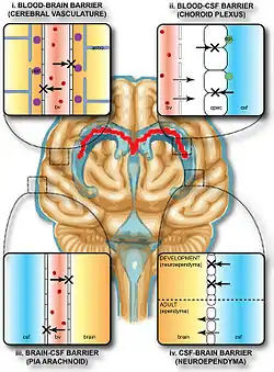 ![]() Solute permeability at the BBB vs. choroid plexus | |