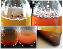 Blood culture bottles contain a growth medium, which encourages microorganisms to multiply, and an anticoagulant that prevents blood from clotting.[33] Sodium polyanethol sulfonate (SPS) is the most commonly used anticoagulant[33] because it does not interfere with the growth of most organisms.[28] The exact composition of the growth medium varies, but aerobic bottles use a broth that is enriched with nutrients, such as brain-heart infusion or trypticase soy broth,[34] and anaerobic bottles typically contain a reducing agent such as thioglycollate. The empty space in an anaerobic bottle is filled with a gas mixture that does not contain oxygen.[33][35]