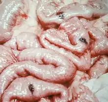 BRBNS is a venous malformation,[6] formerly, though incorrectly, thought to be related to the hemangioma. It carries significant potential for serious bleeding.[7] Lesions are most commonly found on the skin and in the small intestine and distal large bowel. Other organs with the lesions can also be found on the central nervous system, liver, and muscles.[8] It usually presents soon after birth or during early infancy.[8][9]