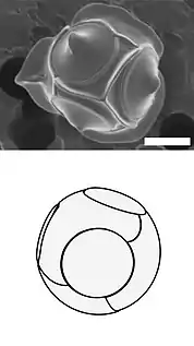 Triparma is a genus of unicellular algae in the family Triparmaceae in the order Parmales. They form siliceous plates on the cell surface that aid in identification. Triparma is distinguished by its possession of three shield plates, three triradiate girdle plates, a triradiate girdle plate with notched ends, and a small ventral plate.[1] It was first described by Booth & Marchant in 1987 and the holotype is Triparma columacea.[2]