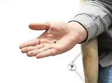 ![]() A hearing-aid user with a sound processor attached behind her ear | |