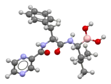 Bortezomib, sold under the brand name Velcade among others, is an anti-cancer medication used to treat multiple myeloma and mantle cell lymphoma.[1] This includes multiple myeloma in those who have and have not previously received treatment.[2] It is generally used together with other medications.[2] It is given by injection.[1]