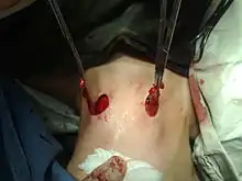 Bilateral branchial cleft sinuses during surgery.