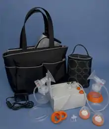 There are two types of electric breast pumps, hospital-grade and personal-use. Hospital-grade pumps are larger and intended for multiple users. Personal-use pumps are generally intended for one user. Electric breast pumps are powered by a motor which supplies suction through plastic tubing to a horn that fits over the nipple. The portions of the pump that come into direct contact with the expressed milk must be sterilized to prevent contamination. This style provides more suction, making pumping significantly faster, and allows users to pump both their breasts at the same time. Electric breast pumps are larger than manual ones, but portable models are available (e.g. in a backpack or shoulder bag). Some models include battery packs or built-in batteries to enable portable operation of the pump. Some electric pumps allow multi-user operation, but recommend an accessory kit for each user to maintain cleanliness.[22]