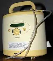 On June 20, 1854, the United States Patent Office issued Patent No. 11,135 to O.H. Needham for a breast pump.[1][2] Scientific American (1863) credits L.O. Colbin as the inventor and patent applicant of a breast pump.[3] In 1921–23, engineer and chess master Edward Lasker produced a mechanical breast pump that imitated an infant's sucking action and was regarded by physicians as a marked improvement on existing hand-operated breast pumps, which failed to remove all the milk from the breast.[4] The U.S. Patent Office issued U.S. Patent 1,644,257 for Lasker's breast pump.[5] In 1956 Einar Egnell published his groundbreaking work, "Viewpoints on what happens mechanically in the female breast during various methods of milk collection".[6] This article provided insight into the technical aspects of milk extraction from the breast. Many Egnell SMB breast pumps designed through this research are still in operation over 50 years after publication.