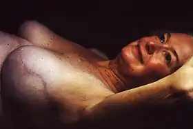 ![]() Result of breast reconstruction after mastectomy. Nipple missing, and cicatrix (scar) is prominent. | |