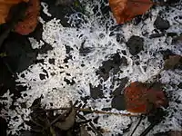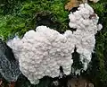 Brefeldia maxima is a species of non-parasitic plasmodial slime mold, and a member of the class Myxomycetes. It is commonly known as the tapioca slime mold because of its peculiar pure white, tapioca pudding-like appearance.[3] A common species with a worldwide distribution, particularly in North America and Europe.[4] It is often found on bark after heavy rain or excessive watering. Their spores are produced on or in aerial sporangia and are spread by wind,[5] however beetles of the family Lathridiidae are also reported to disperse the spores.[6] Bonner states that soil invertebrates and rain mainly disperse spores as they are sticky and unlikely to be carried by air currents.[7]