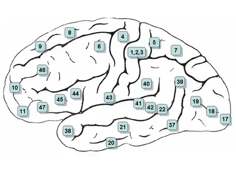 Different parts of the cerebral cortex are involved in different cognitive and behavioral functions. The differences show up in a number of ways: the effects of localized brain damage, regional activity patterns exposed when the brain is examined using functional imaging techniques, connectivity with subcortical areas, and regional differences in the cellular architecture of the cortex. Neuroscientists describe most of the cortex—the part they call the neocortex—as having six layers, but not all layers are apparent in all areas, and even when a layer is present, its thickness and cellular organization may vary. Scientists have constructed maps of cortical areas on the basis of variations in the appearance of the layers as seen with a microscope. One of the most widely used schemes came from Korbinian Brodmann, who split the cortex into 52 different areas and assigned each a number (many of these Brodmann areas have since been subdivided). For example, Brodmann area 1 is the primary somatosensory cortex, Brodmann area 17 is the primary visual cortex, and Brodmann area 25 is the anterior cingulate cortex.[4]