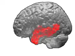 Brodmann area 21, or BA21, is part of the temporal cortex in the human brain. The region encompasses most of the lateral temporal cortex, a region believed to play a part in auditory processing and language. Language function is left lateralized in most individuals. BA21 is superior to BA20 and inferior to BA40 and BA41.