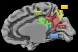 The area has been subdivided further: In the macaque (Macaca fascicularis) the following subdivisions have been suggested:[2]