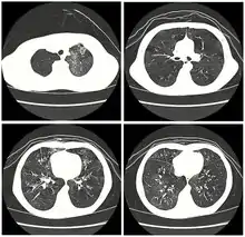 | Diagnostic method | CT scan, pulmonary function tests, lung biopsy[1] |