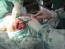 The rigid bronchoscope is a hollow metal tube used for inspecting the lower airway.[6] It can be for either diagnostic or therapeutic reasons. Modern use is almost exclusively for therapeutic indications. Rigid bronchoscopy is used for retrieving foreign objects.[7] Rigid bronchoscopy is useful for recovering inhaled foreign bodies because it allows for protection of the airway and controlling the foreign body during recovery.[8]