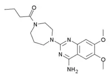 Bunazosin (INN) is an alpha 1 antagonist.[1] Bunazosin was initially developed to treat benign prostatic hyperplasia (BPH). It has been approved in Japan in a topical form to treat glaucoma. The mechanism of action is a reduction of aqueous outflow through the uveoscleral pathway resulting in lowering the intraocular pressure. It also may act to improve blood flow to the ocular nerve. Systemic Alpha-1 adrenergic receptor antagonists have been implicated in Intraoperative Floppy Iris Syndrome (IFIS). Bunazosin potentially could have the same effect but there has been no research to substantiate this as a risk for cataract surgery.