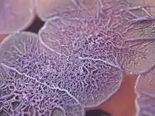 Burkholderia thailandensis is a nonfermenting motile, Gram-negative bacillus that occurs naturally in soil. It is closely related to Burkholderia pseudomallei, but unlike B. pseudomallei, it only rarely causes disease in humans or animals.[2][3][4][5] The lethal inoculum is approximately 1000 times higher than for B. pseudomallei.[6] It is usually distinguished from B. pseudomallei by its ability to assimilate arabinose.[7] Other differences between these species include lipopolysaccharide composition, colony morphology, and differences in metabolism.[8]