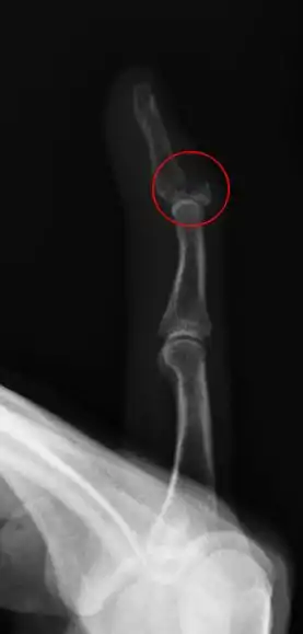 | Fracture of the dorsal base of the distal falange by extensor tendon avulsion (Busch fracture) | |