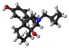 Butorphanol is a morphinan-type synthetic agonist–antagonist opioid analgesic developed by Bristol-Myers.[1][2][3][4][5] Butorphanol is most closely structurally related to levorphanol. Butorphanol is available as the tartrate salt in injectable, tablet, and intranasal spray formulations. The tablet form is only used in dogs, cats and horses due to low bioavailability in humans.