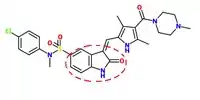 Later, series of more selective c-Met inhibitors were designed, where an indolin-2-one core (encircled in figure 1) was present in several kinase inhibitors. SU-11274 was evolved by substitution at the 5-position of the indolinone [9] and by adding a 3,5-dimethyl pyrrole group, PHA-665752 was evolved [11] – a second-generation inhibitor with better potency and activity.[10]
