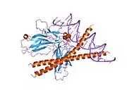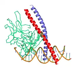 40. Glover JN, Harrison SC (January 1995). "Crystal structure of the heterodimeric bZIP transcription factor c-Fos-c-Jun bound to DNA". Nature. 373 (6511): 257–61. Bibcode:1995Natur.373..257G. doi:10.1038/373257a0. PMID 7816143. S2CID 4276971.