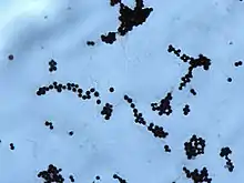Infection with C. neoformans is termed cryptococcosis. Most infections with C. neoformans occur in the lungs.[12] However, fungal meningitis and encephalitis, especially as a secondary infection for AIDS patients, are often caused by C. neoformans, making it a particularly dangerous fungus. Infections with this fungus are rare in those with fully functioning immune systems.[13] So, C. neoformans is sometimes referred to as an opportunistic fungus.[13] It is a facultative intracellular pathogen[14] that can utilize host phagocytes to spread within the body.[15][16] Cryptococcus neoformans was the first intracellular pathogen for which the non-lytic escape process termed vomocytosis was observed.[17][18] It has been speculated that this ability to manipulate host cells results from environmental selective pressure by amoebae, a hypothesis first proposed by Arturo Casadevall under the term "accidental virulence".[19]